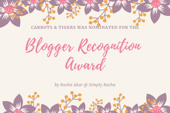 A wonderful fellow blogger has recently nominated my for the Blogger Recognition Award!