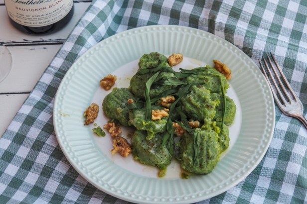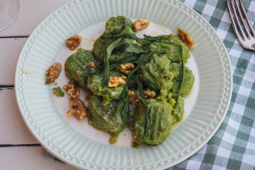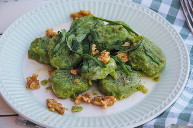 Wild garlic not only lends the gnocchi a lovely vibrant green shade. It also adds a subtle garlicy flavour to these fluffy potato dumplings.