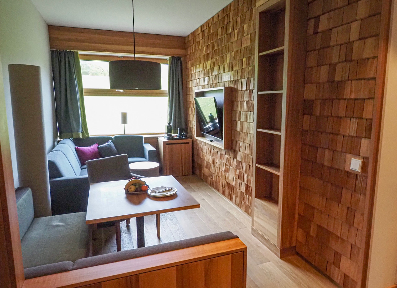 But earlier this year when planning a last-minute trip for an extended Easter weekend, flipping through my extensive clippings of interesting hotels to seek out, one immediately grabbed my attention. Or better, the image of a spacious, light-flooded room in an all-natural wooden design with panoramic mountain views outside a large window-front.