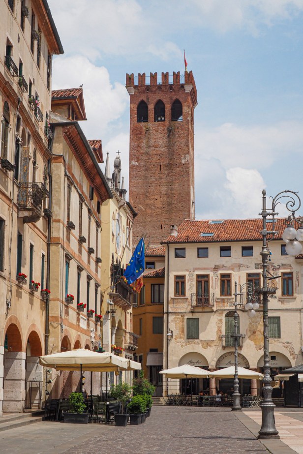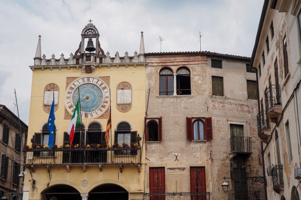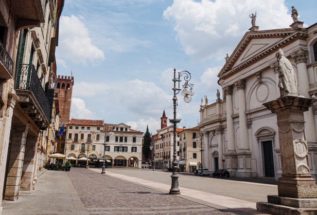 The main town square of Bassano, Piazza della Liberta, is surrounded by stunning historic buildings including the Church of San Giovanni Battista and the 15th century townhall.