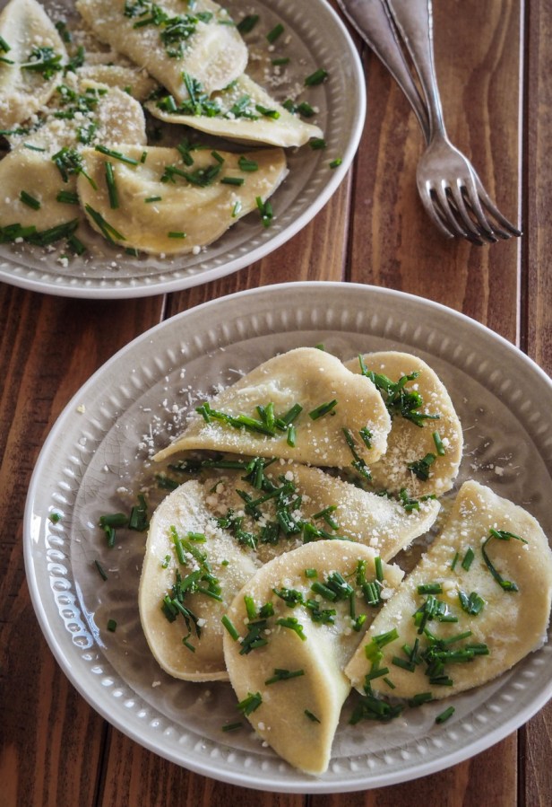Schlutzkrapfen (mezzelune): Resembling the classic Italian ravioli, Schlutzkrapfen are originally from Val Pusteria in South Tyrol where they have been documented for the first time around 300 years ago. The dish takes its Italian name, mezzelune, from the half-moon shape of the pasta. The dough is made from rye or buckwheat flour, with the filling typically made with spinach, parsley and ricotta cheese. That said, you will also find versions stuffed with potatoes, meat, mushrooms, and turnips. Schlutzkrapfen are boiled in water (just like ravioli) and traditionally served drizzled with melted brown butter and sprinkled with chives.