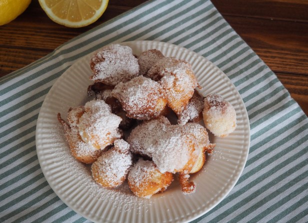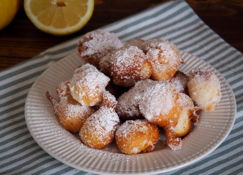 These lemon-scented fried balls are one of the popular variations of the simple original fried dough balls. They typically consist of flour, eggs, sugar, milk, butter, and lemon zest and juice. The result are deliciously light, fluffy, and sweet dough balls.