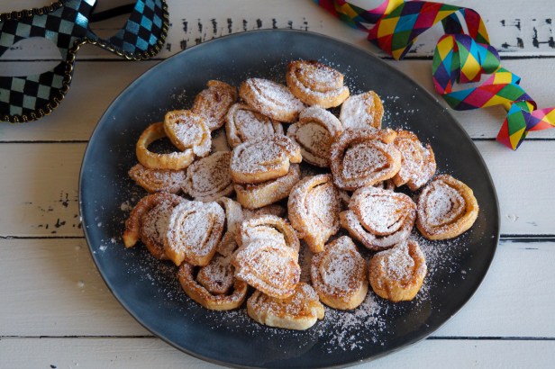 Plus, I can’t resist devouring the delicious fried sweet carnival treats appearing in pastry shops and bakeries these days. Here in Germany this would include Krapfen or Kreppel (sweet fried doughnuts often filled with jam or custard). Other countries have their own local favourites. But I can’t think of any country rivalling the number of Italy’s various carnival sweets / desserts.